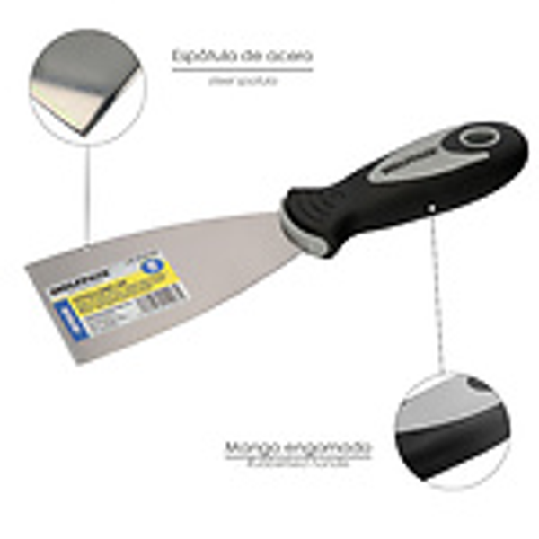 - Ideal para ser usada en diferentes trabajos como enmasillar, raspar pinturas, rellenar de huecos con yesos o masillas, eliminar pequeñas irregularidades, etc.